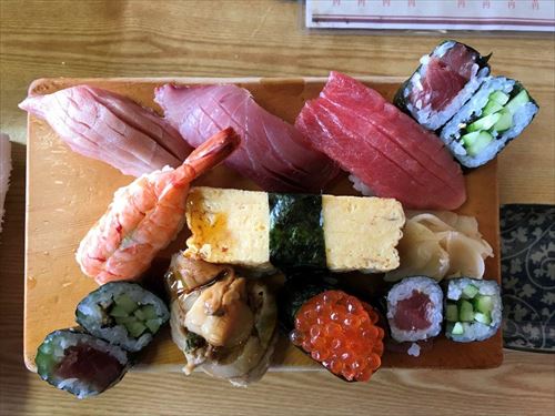 布良海岸近くの「富鮨」にて。上鮨を完食。久々の鮨。給料日前の金銭が